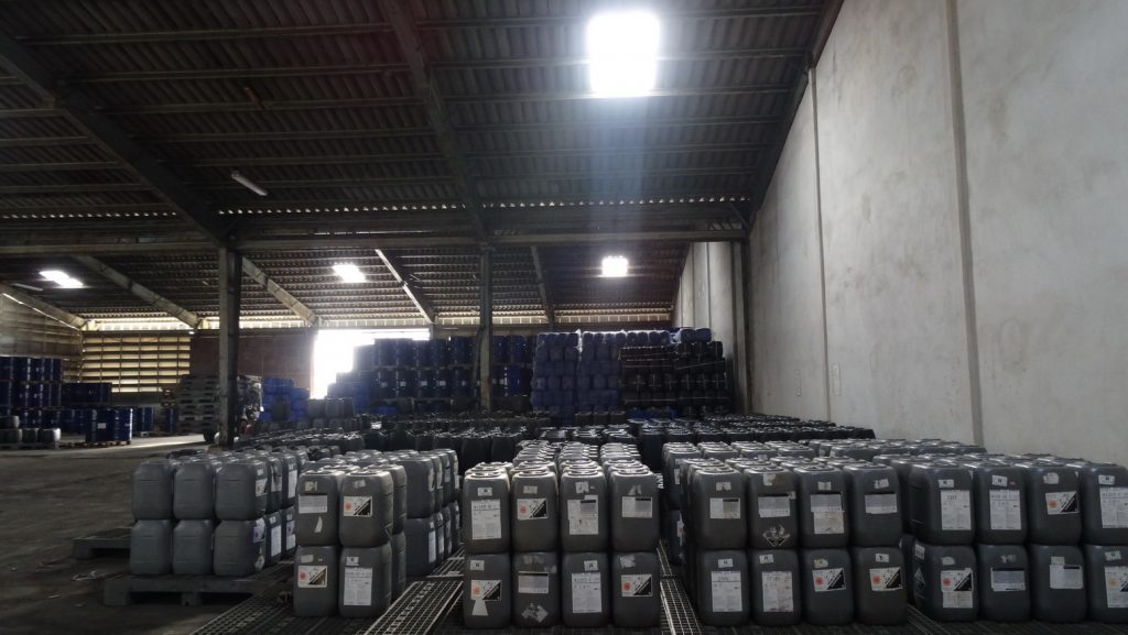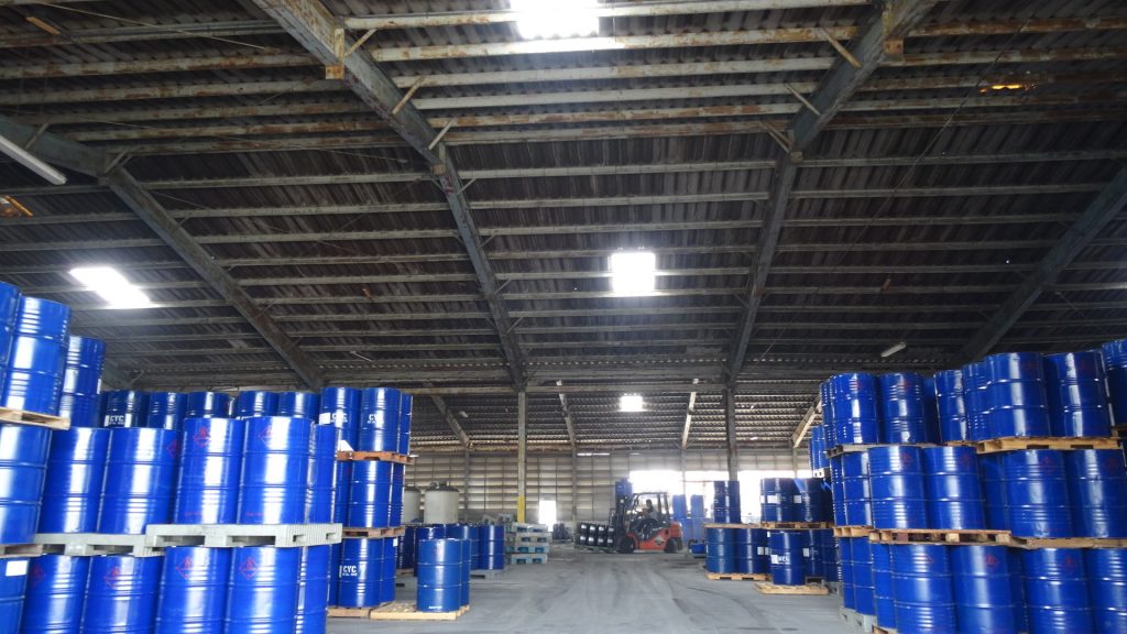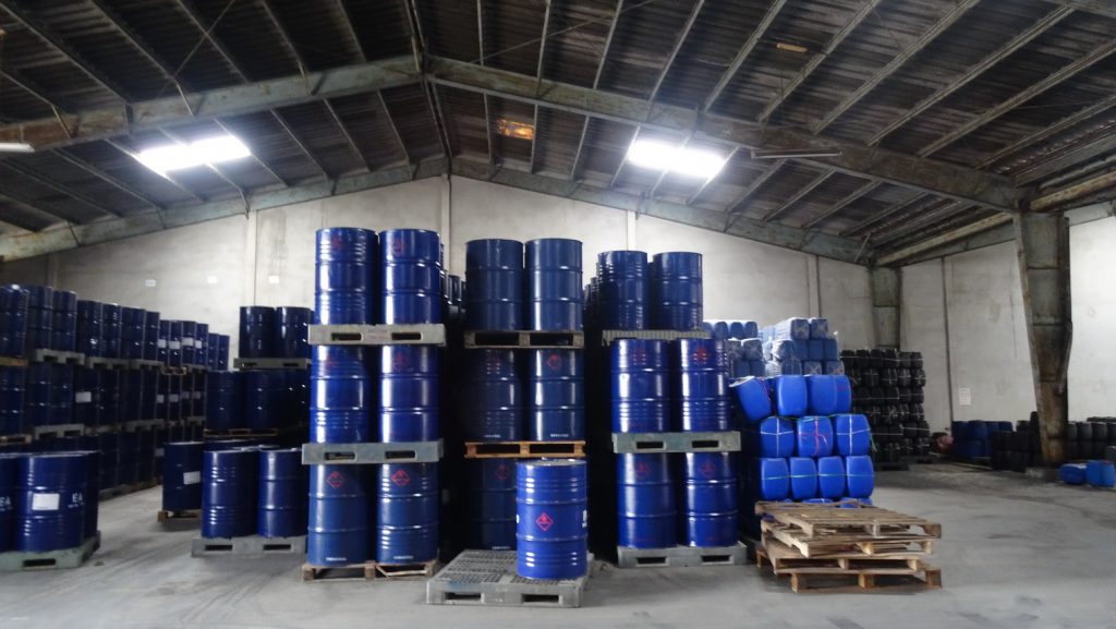 เรามีคลังสินค้า 2 แห่ง พื้นที่รวม 5,040 ตร.ม. ซึ่งสามารถเก็บสารเคมีอันตรายในรูปแบบถังหรือถังขนาด 200 ลิตร